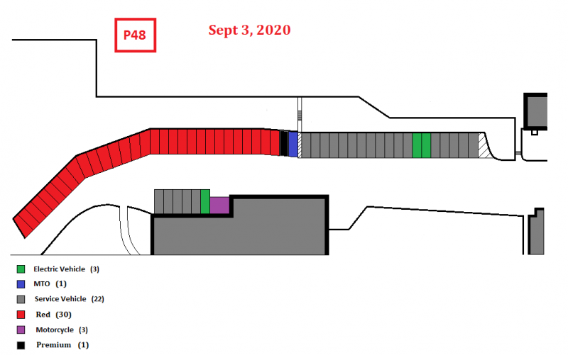 Black Zone Permit Parking Areas, Blue Zone Permit Parking Areas, Red Zone Permit Parking Areas, Service Vehicle Areas, and Accessible Parking Areas are located in this lot. There are E/V Charging stations in this lot. An EV permit or payment via PayByPhone is required.